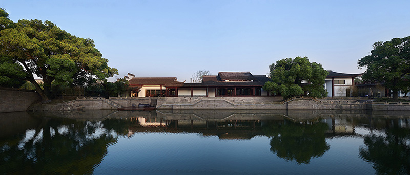 窗外露台以竹、樟为伴,“竹影扫阶尘不动,月轮穿沼水无痕”,以此清逸处止浮世之纷扰。桥头旁那颗550年的香樟古树则以自身底蕴和苍劲的生命力贯穿古今,根部潺潺流动的上塘河仿佛也在诉说千年故事,奔向遥远的未来。