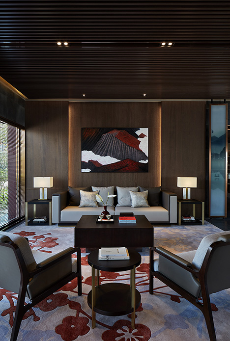VIP休息室的地毯、摆件则延续茶室氛围,细微之间,风雅娴静的气度神韵也升腾而出。