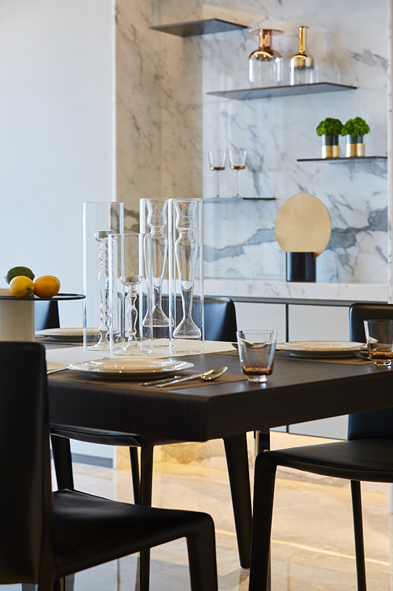 露台以地面高低区隔就餐区及休闲区,为名流精英的派对聚会提供绝佳场所。在这里纵览城市天际线,惬意悠然间自成格局。