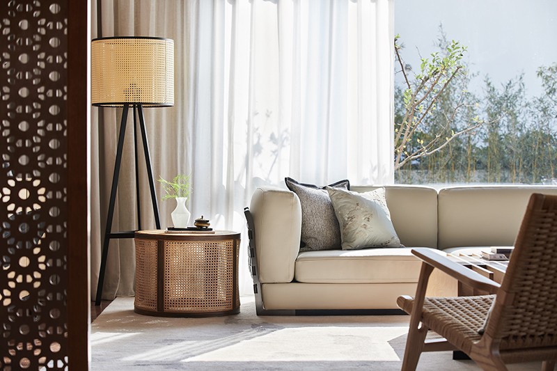 壹舍团队受邀进行软装改造的苏州古北雅园别墅样板间,坐落于太湖第一大岛——西山岛的东南一隅。在前期堪场过程中,太湖上粼粼波光给予了设计团队灵感,基于在地性思考,提取演绎成“湖畔度假”主题,结合雅韵诗意的生活方式,旨在打造闲适悠然的人居场景。