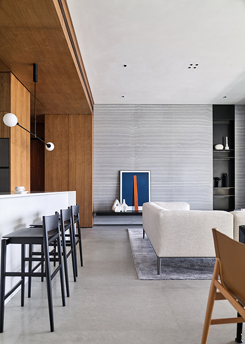 “90后海归夫妇,旅居海外多年并处于回国创业阶段,常年是候鸟迁飞的状态,他们畅想轻生活、慢节奏的度假氛围。在好友引荐下,并对我们一系列作品所呈现的‘现代简约融合都市气质’印象颇深,大家在见面畅谈后一拍即合,迅速开启了本次合作。都市度假居所也是双方一开始就明确的设计落点。”方磊坦言道。