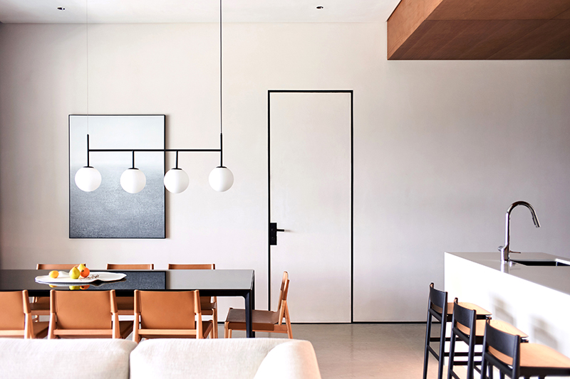无论是色调、构图亦或是意境之感,设计师皆强调与整体氛围的浑然交融。餐桌后的画作,充满着海洋般的深邃与迷离,在界限外延、海天相连的一瞬,显得极简、平静与唯美。