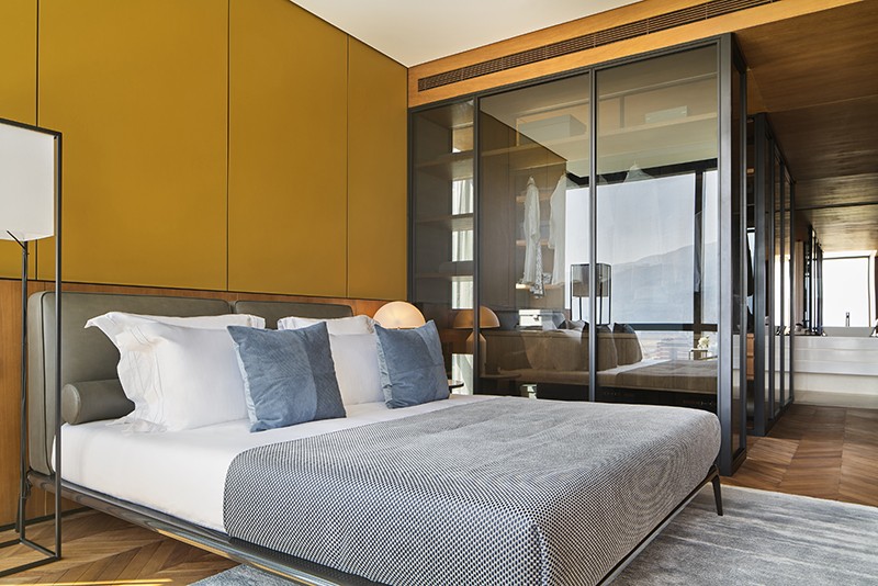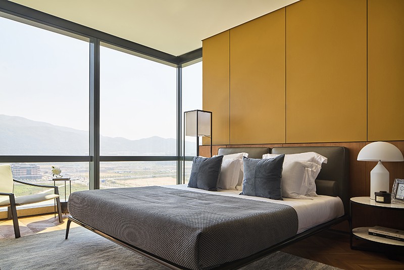 基于平面布局,设计师整合原始柱体结构,并梳理出洄游灵活的动线,勾画通透却又耐人寻味的界限。客餐厅与厨房、阳台、泳池一体化衔接,在开敞互联间,让轻松、互动在每一个角落绽放。巨大的落地窗在开合之间带来绝佳的视野与采光,远方的旖旎风光尽收眼底,也创造出无比丰富的内外关系。