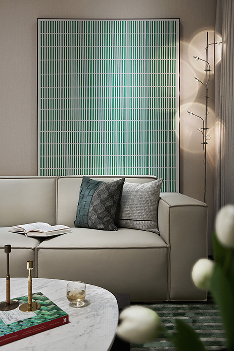 灰色基调打底,绿意铺陈妆点,演其境,留其韵,入户即可感应艺术与自然的邂逅,弥漫着盎然生机。