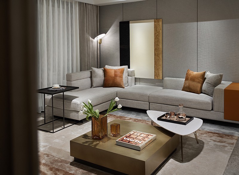 潜步入室,温润的橘、棕色随性舒展,以暖调融合美学笔触,张弛有度,诠释出内敛、精致的气韵。