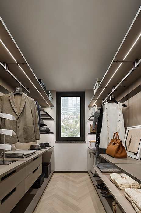 双排衣帽间的划分更加细致、全面,并以周全的考量,兼顾功能和展示属性,让实用与美学达到最佳平衡。浴室是最接近自我的地方,极致的简约风搭配大理石质感的墙面、台盆等,仿佛放下心防的赤诚,只余纯粹与精致。