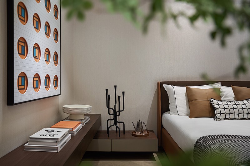 次卧删繁就简,以细腻柔和铺就一室安心。寥寥几笔,让物与形相融、情与景相通,平淡之处不缺风趣,跳跃之笔自为和谐,心之所向,尽得闲适。