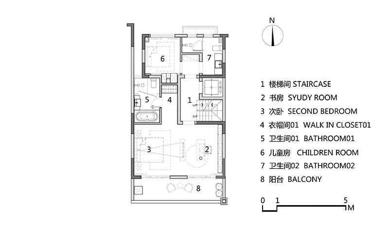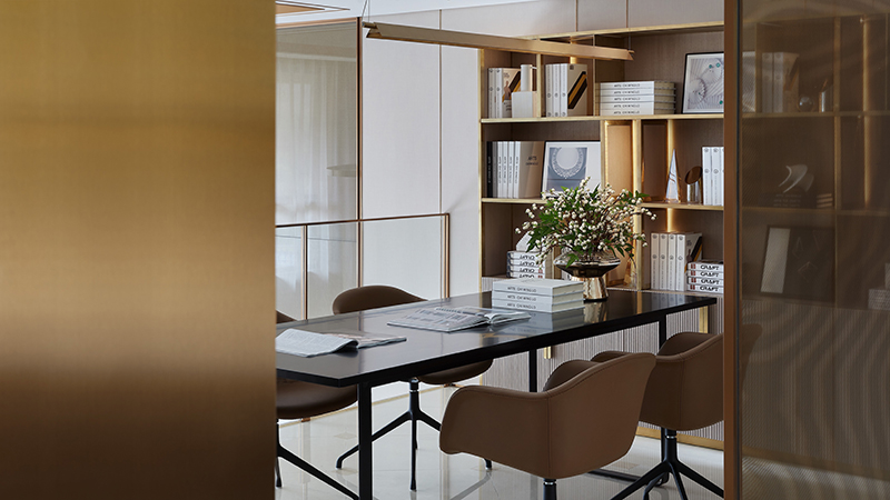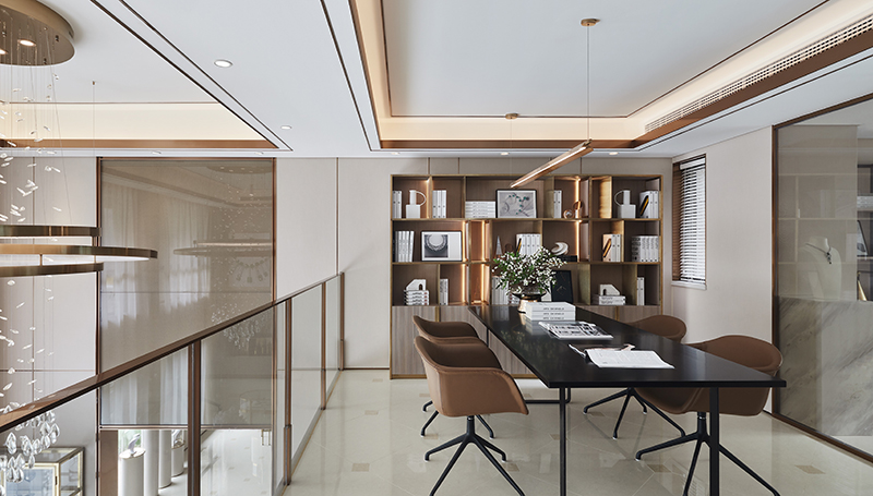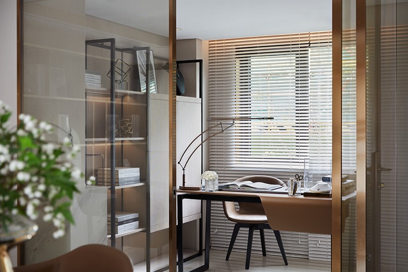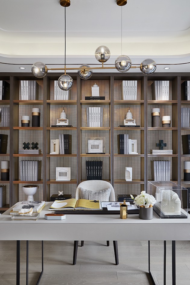 开放式书房与睡眠区相望,融合了现代人的功用性与审美需求,并予以其更深的自由度与灵活性。多功能书架,在一脉相承的设计理念中,呈现充沛的线条律动,渲染宽广的精神境域,尽显高级细致之美。