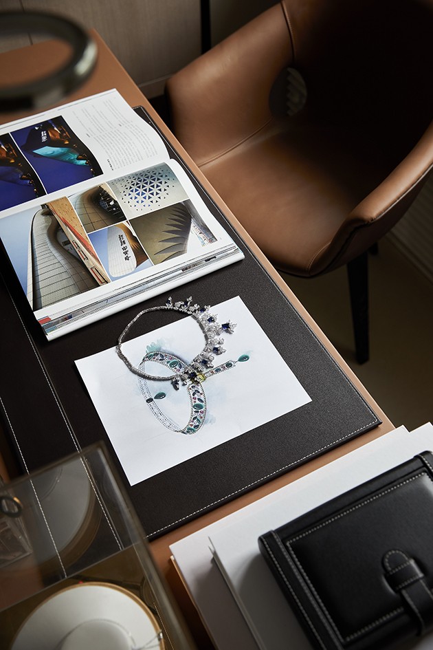 规划的商业架构以水晶为主角,设计团队仔细梳理了功能分区与动线关系,旨在呈现宛如奢侈品店的情景氛围。同时又遵循商业设计所要表达的商业逻辑,搭建多元、全方位的展陈形式,并有效利用夹层设置互通、错层的视觉,预设洽谈区与水吧台,进一步提升商业服务质量,强化访客体验。