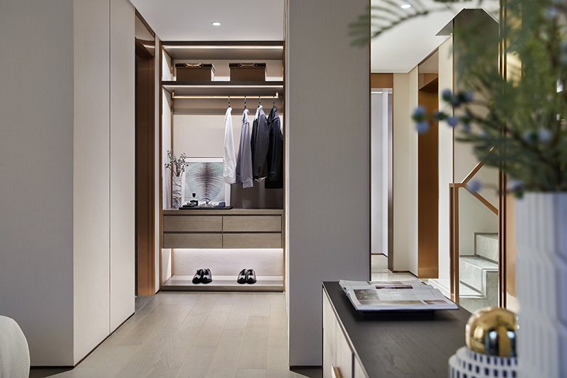 套间一隅设独立衣帽间,并嵌入灯带为其添上独特的情调。这既是空间的合理化利用和居者需求的完善,亦是生活品质的缩影与细节的极致追求。