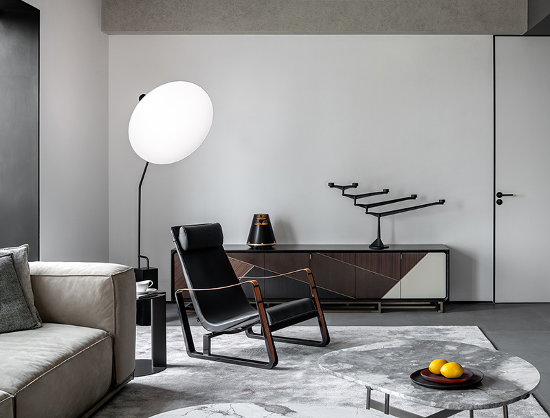 得益于方磊对高端豪宅的深刻洞察、与对现代简约风格丰富的驾驭经验,双方畅谈后一拍即合。“业主夫妇对家有着清晰的诉求,他们崇尚简单舒适的生活,在密切的沟通中,灵感与爱好相互碰撞,进一步梳理、提炼出这个家该有的模样。”