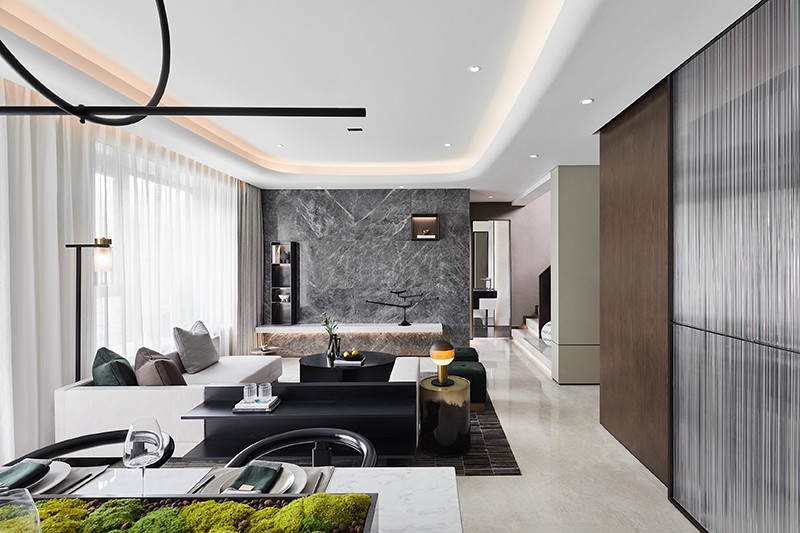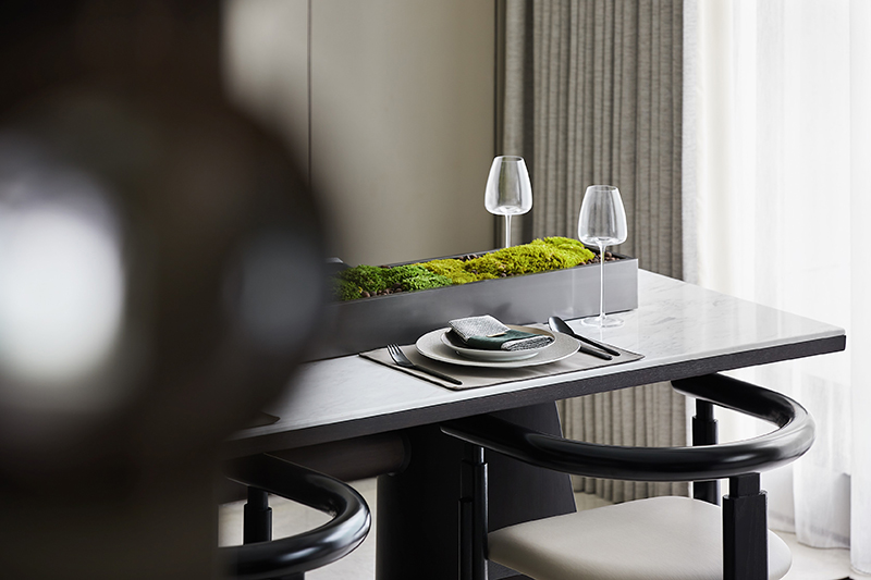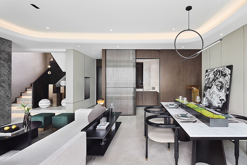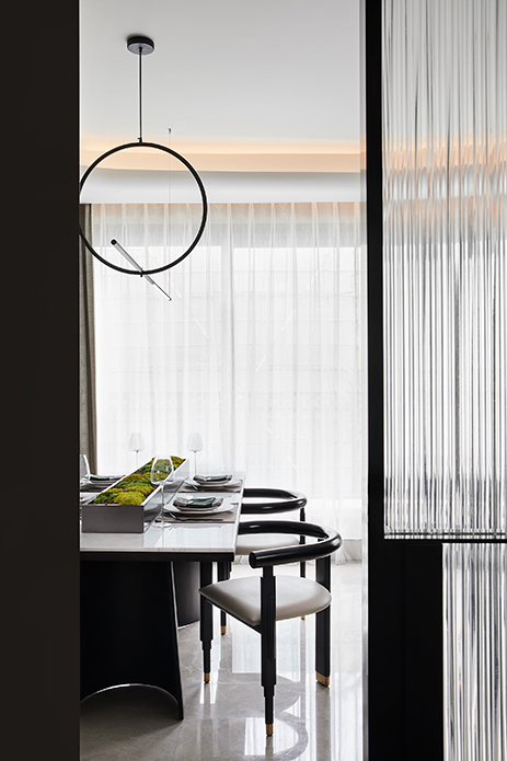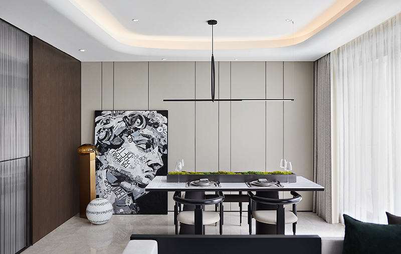 精致的生活离不开餐厅的调味与补充,而与客厅的开敞互联则传达出微妙的视觉张力。