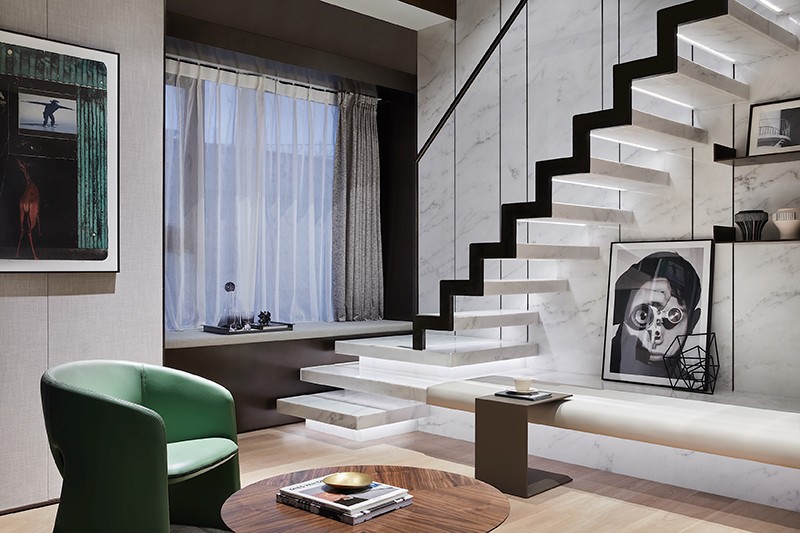 而延续的台面则形成多元的交错关系,既赋予其起居室、阅读区等多样性功能,又可作为主卧与阁楼的联结动线,满满的细节考量,皆映衬出对未来的多重构想与探索。