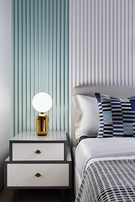 为加强主卧的完整性,设计师打破原始的墙体,重新进行规划组合。增设而成的楼梯,亦是积木盒子的另类表达,增添一抹节奏与时尚之美。