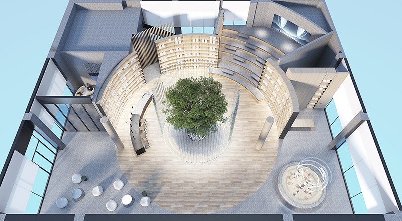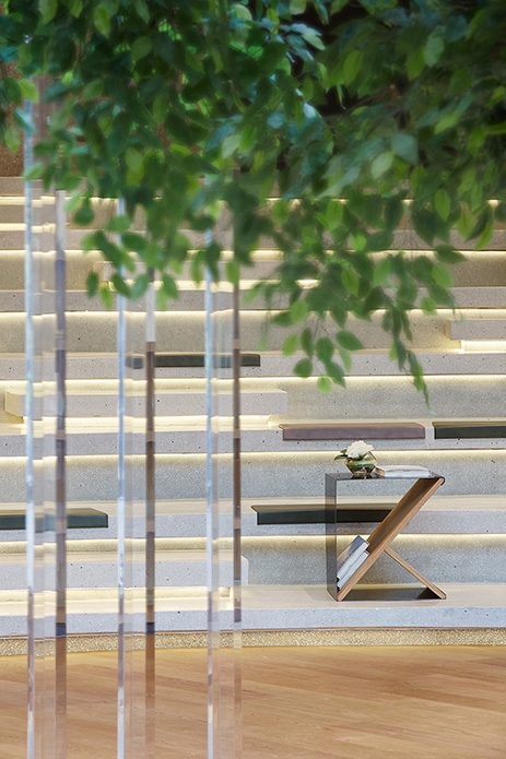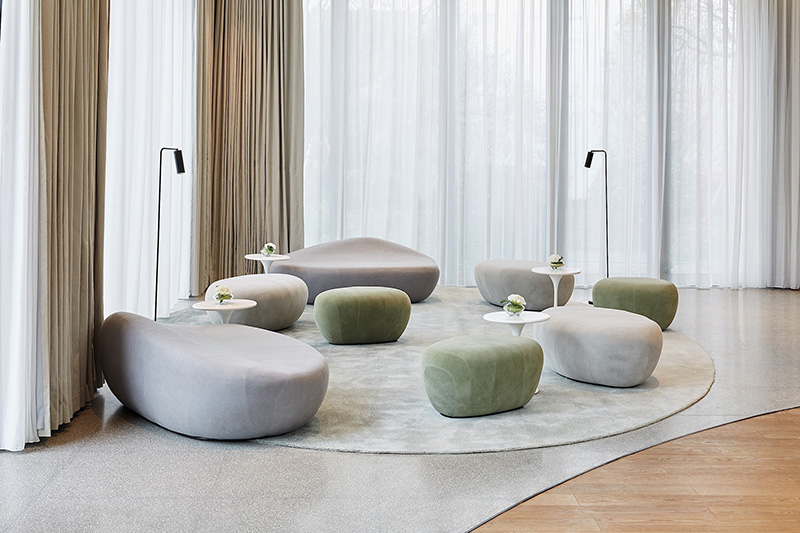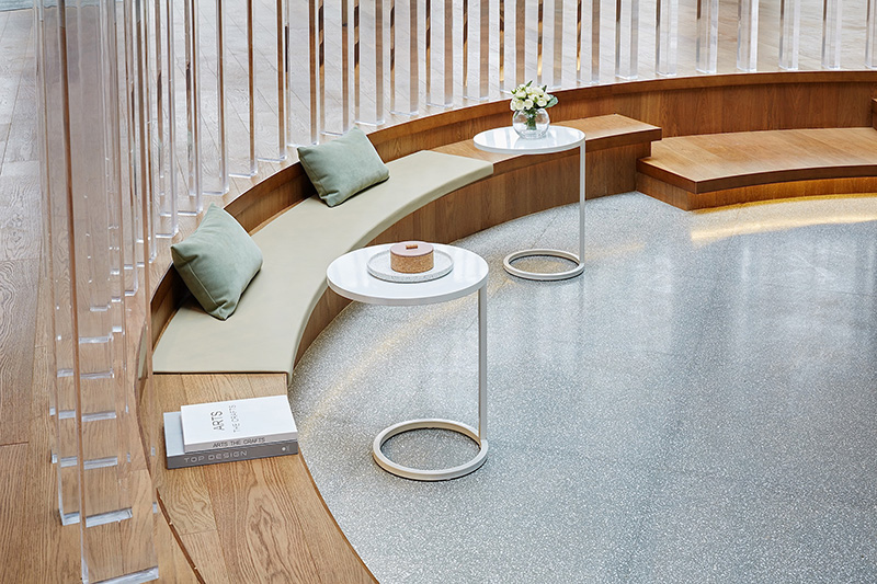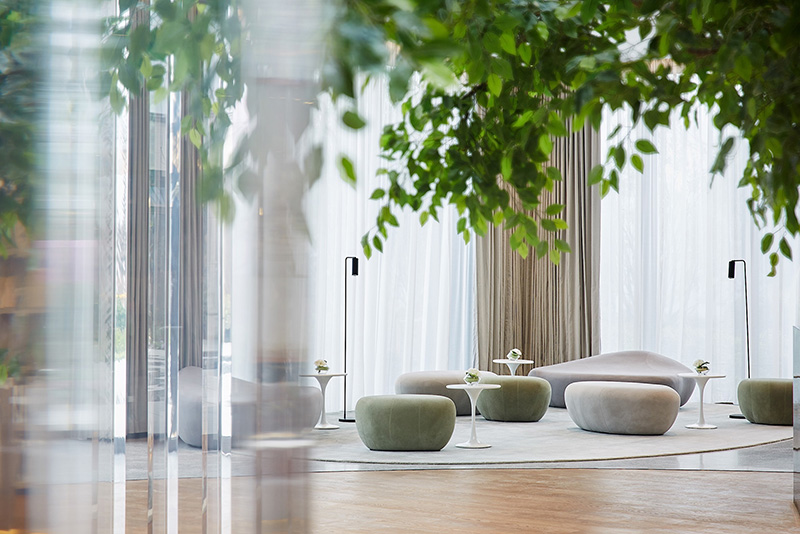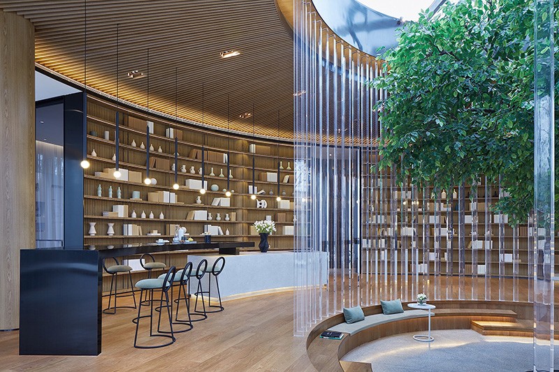 此外通过下沉式设置,高低错落让这一隅更具玩味。绿色象征着生命力,也隐喻着成长意义。置身树下,可探寻和享受自然界的清新舒适,生趣盎然。于某种层面而言,这也是苏州现代生活与园林情节的一场跨时空演绎。