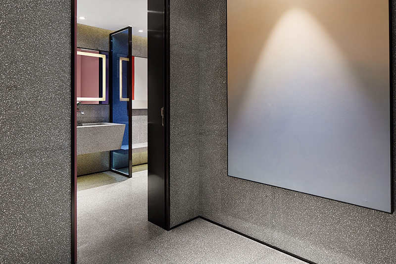 设计师对于选材极为克制,卫生间仍采用水磨石呈现简洁基底,与其他元素结合也相映成趣,在质感上显得朴实且干练。