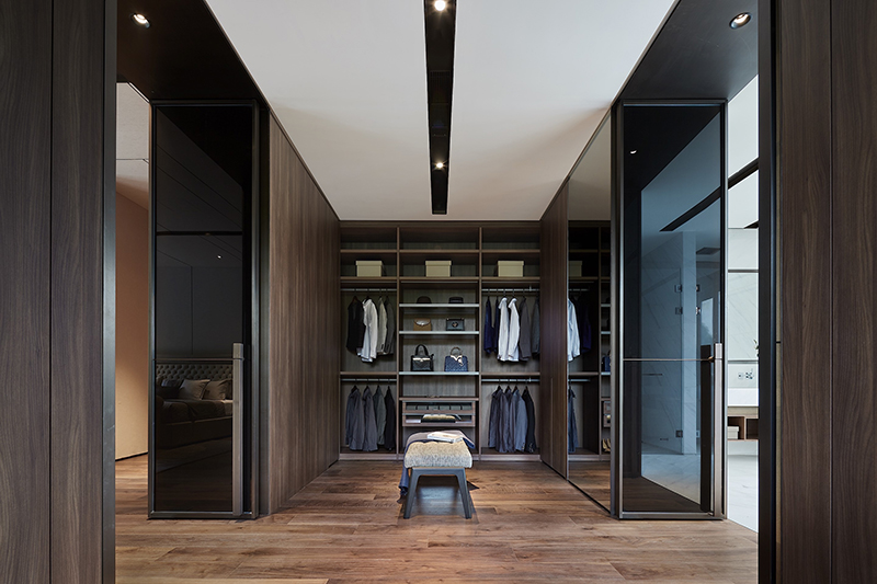 衣帽间封闭与开放柜体结合,在变化的韵律中营造精致、高贵的生活态势。