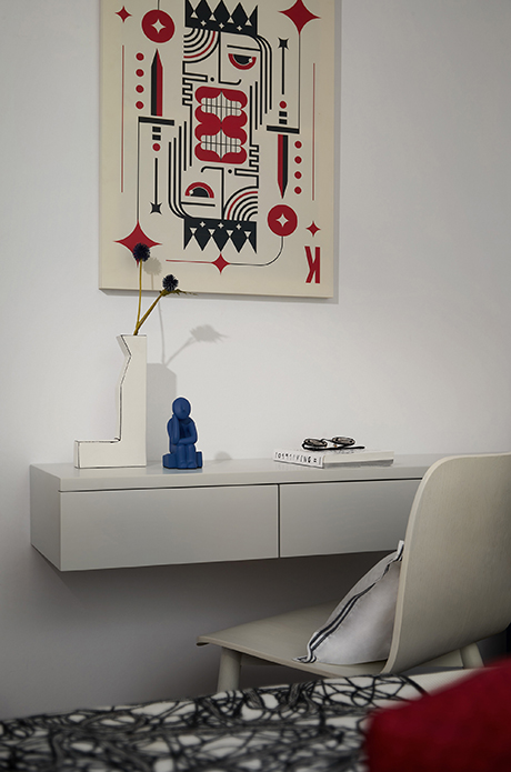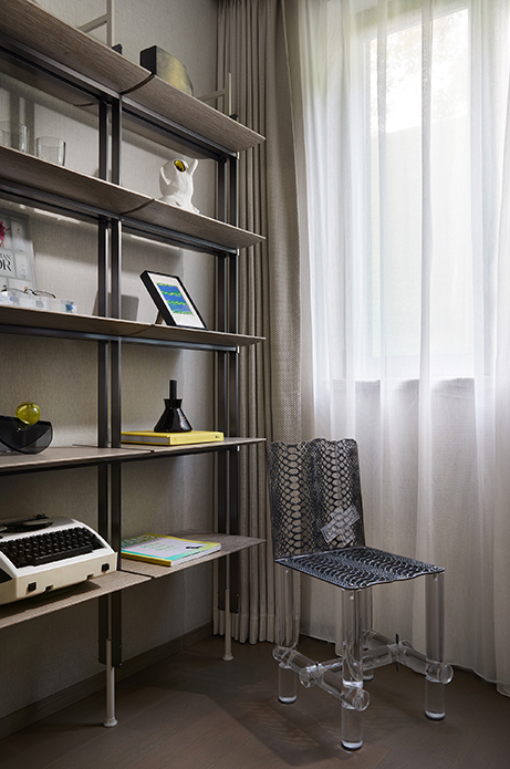 艺术源于生活,高于生活,最终又归于生活。书房宛如藏宝阁,承载着家庭成员的喜好与兴趣,各式珍藏单品置身其中,希望让彼此独具一格的审美与创意皆能尽情挥洒。
